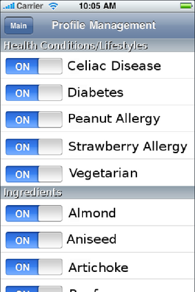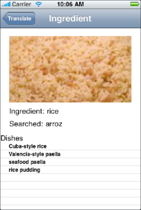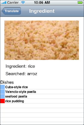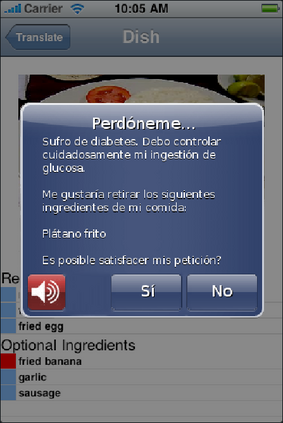 We propose a network independent, hand-held system to translate and disambiguate foreign restaurant menu items in real-time. The system is based on the use of a portable multimedia device, such as a smartphones or a PDA. An accurate and fast translation is obtained using a Machine Translation engine and a context-specific corpora to which we apply two pre-processing steps, called translation standardization and $n$-gram consolidation. The phrase-table generated is orders of magnitude lighter than the ones commonly used in market applications, thus making translations computationally less expensive, and decreasing the battery usage. Translation ambiguities are mitigated using multimedia information including images of dishes and ingredients, along with ingredient lists. We implemented a prototype of our system on an iPod Touch Second Generation for English speakers traveling in Spain. Our tests indicate that our translation method yields higher accuracy than translation engines such as Google Translate, and does so almost instantaneously. The memory requirements of the application, including the database of images, are also well within the limits of the device. By combining it with a database of nutritional information, our proposed system can be used to help individuals who follow a medical diet maintain this diet while traveling.