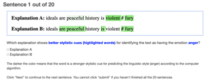 翻译:大型预训练语言模型在各种样式分类任务上取得了令人印象深刻的结果,但它们经常学习到虚假的领域特定词汇以进行预测 (Hayati等,2021)。虽然人类解释强调样式标记作为此任务的重要特征,但我们观察到模型解释通常与之不一致。为了解决这个问题,我们引入了 StyLEx,这是一个模型,它从人工注释的样式特征解释中学习,并共同学习执行任务和预测这些特征作为模型解释。我们的实验表明,StyLEx 可以提供类似于人类的风格词汇解释,而不会牺牲句子级风格预测的性能,同时应用于领域内和领域外的数据集。与广泛使用的基于显著性的解释基准相比,StyLEx 的解释显示了解释度量 (充分性、可信度) 的显着提高。在人类注释方面,它们也比基线有更高的可理解性。