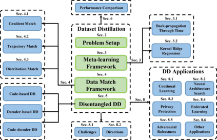 翻译:过去十年来,深层学习技术史无前例地发展,成为许多应用领域的主要选择。这一进展主要归功于系统协作,快速增长的计算机资源鼓励先进的算法处理大量数据。然而,应对计算机功率有限的数据无限增长逐渐变得具有挑战性。为此,提出了提高数据处理效率的多种办法。作为减少数据的方法之一的数据集蒸馏方法之一,通过合成一个来自巨型数据的小型典型数据集来解决该问题,并吸引了深层学习界的极大关注。现有的数据集蒸馏方法可以分类成元学习和数据匹配框架,根据是否明确模拟目标数据进行分类。尽管数据集蒸馏显示在压缩数据集方面有惊人的性能,但仍有一些局限性,如蒸馏高分辨率数据等。本文提供了对数据元蒸馏的多个方面的全面理解,包括蒸馏框架和算法、分解的数据集蒸馏、性能比较和应用。最后,我们讨论了进一步推进未来关于数据蒸馏的研究的挑战和有希望的方向。