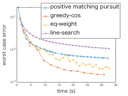 翻译:内核放牧是用来在复制内核Hilbert空间中构建二次公式的一种方法。虽然内核放牧有一些好处,例如二次的数值稳定性和节点和重量的有效输出,但最坏情况集成错误的趋同速度与其他四面形方法相比是缓慢的。为了解决这个问题,我们提出了两个改进的内核放牧算法版本。两种算法的基本概念都涉及近似负梯度和正线性垂直组合的顶点方向。我们从理论上分析了两种算法的趋同和有效性;特别是,我们表明负梯度的近似直接影响到趋同速度。此外,我们还确认,通过数字实验,最坏情况集成错误在节点数和计算时间方面加速趋同。