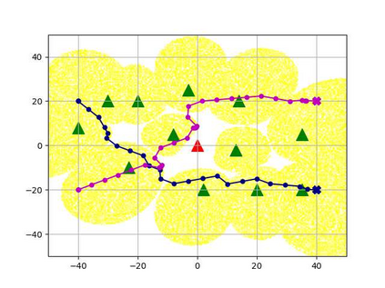 翻译:无人驾驶航空飞行器(UAVs)预计将成为无线网络的一个组成部分。 在本文中,我们的目标是寻找多个蜂窝连接的无人驾驶航空器的无碰撞路径,同时满足在动态干扰器面前与地面基地站(GBS)连接的要求。我们首先将这一问题作为离散域的相继决策问题,提出连通、避免碰撞和运动限制。然后,我们提出一个离线时间差异(TD)学习算法,以在线信号到干涉加噪音比率(SINR)绘图解决问题。更具体地说,一个价值网络是用TD方法建造和培训离线的,以编码无人驾驶飞行器之间以及无人驾驶飞行器与环境之间的相互作用;一个在线SIRNR测绘深神经网络(DNNN)的设计和培训,通过有监督的学习来说明干扰的影响和变化。 数字结果显示,在没有关于干扰器的任何信息的情况下,拟议的算法可以达到接近理想情景的性能水平,而SINR-M-map是完美的,通过实时导航和高度避免的多式导航成功率进行。