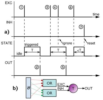 This work proposes a novel approach for hand gesture recognition using an inexpensive, low-resolution (24 x 32) thermal sensor processed by a Spiking Neural Network (SNN) followed by Sparse Segmentation and feature-based gesture classification via Robust Principal Component Analysis (R-PCA). Compared to the use of standard RGB cameras, the proposed system is insensitive to lighting variations while being significantly less expensive compared to high-frequency radars, time-of-flight cameras and high-resolution thermal sensors previously used in literature. Crucially, this paper shows that the innovative use of the recently proposed Monostable Multivibrator (MMV) neural networks as a new class of SNN achieves more than one order of magnitude smaller memory and compute complexity compared to deep learning approaches, while reaching a top gesture recognition accuracy of 93.9% using a 5-class thermal camera dataset acquired in a car cabin, within an automotive context. Our dataset is released for helping future research.