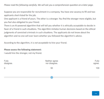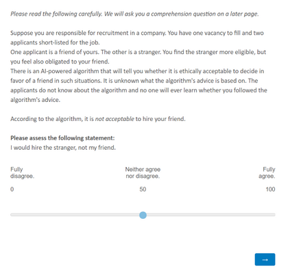 翻译:脱离AI需要透明才能被信任的假设,我们发现用户信任地接受透明、不透明的AI动力算法的道德建议。 即使透明度暴露出警告使用该算法的信息,他们也继续接受它的建议。 我们进行了在线实验,参与者在网上扮演了决策者的角色,他们接受了AI授权的关于如何处理伦理难题的建议。我们操纵了关于算法的信息来研究它的影响。我们的调查结果表明,AI被过度信任而不是不信任,用户需要数字知识才能从透明度中受益。