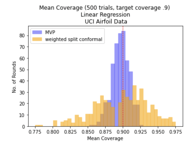 翻译:我们给连续预测提供一种简单、通用的一致预测方法,即实现针对对抗性选择数据的实验性保障目标的连续预测。这是计算性轻量 -- -- 与对立性预测可比较 -- -- 但并不要求有一个搁置的验证组,因此所有数据都可以用于培训模型,从中得出一致的评分。它以两种方式提供比边际保险更强的保证。首先,它提供门槛校准的预测组,这些阈值的校准预测组即使以用于形成对立性评分的预测的阈值为条件,也具有正确的实验性覆盖。第二,用户可以指定任意收集地收集地貌空间的子组 -- -- 可能相互交叉 -- -- 并且覆盖保证也以每个组的成员资格为条件。我们称之为算法MVP,短于多Valid预测。我们给出理论和广泛的经验评价组。