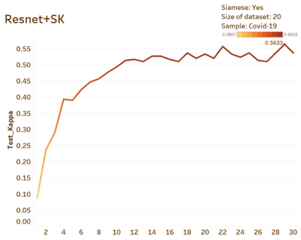 翻译:医学影像识别往往面临着实际应用中数据不足的问题。在少样本条件下进行影像识别与处理,会产生过拟合、低识别率、低可靠性以及不足鲁棒性的问题。通常情况下特征的差别十分细微、识别受到视角、背景、遮挡等因素影响,增加了识别的难度。此外,在细粒度图像中,少样本问题导致图像中有用特征信息不足。考虑到少样本和细粒度图像识别的特点,本研究建立了一种基于注意力和孪生神经网络的识别模型。针对少样本问题,提出了一种适度分类模型的孪生神经网络。采用基于注意力的神经网络作为主网络,以提高分类效果。选择COVID-19肺样本进行模型测试。结果表明,样本数量越少,优势就越明显,优于普通神经网络。