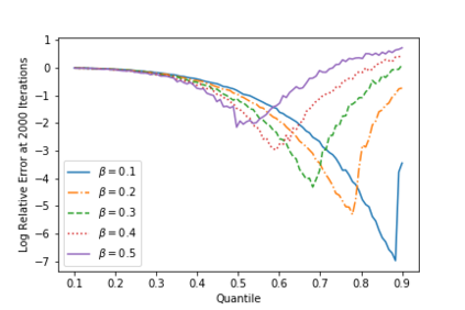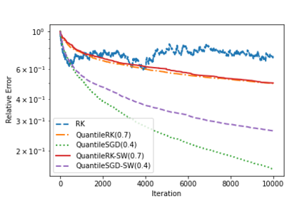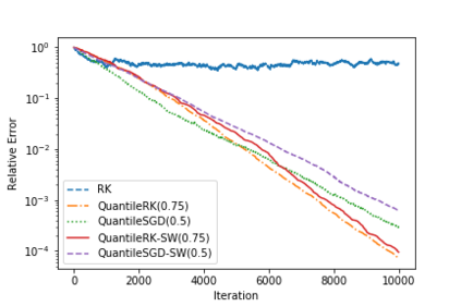 翻译:从医学成像和传感器网络到错误校正和数据科学(及以后)等应用,人们往往需要解决部分测量工作被破坏的大规模线性系统。我们考虑解决由于测量矢量$\mathbf{x ⁇ mathbf{x ⁇ mathbf{b{b}}美元方面的腐败而不一致的大型线性等式系统。我们开发了一些迭代方法的变种,这些变种可汇合到无干扰的方程式系统的解决办法中,即使在出现大规模腐败的情况下也是如此。这些方法利用残余矢量绝对值的四分法来确定循环更新。我们提出了理论和实验结果,显示了这些迭代方法的希望。