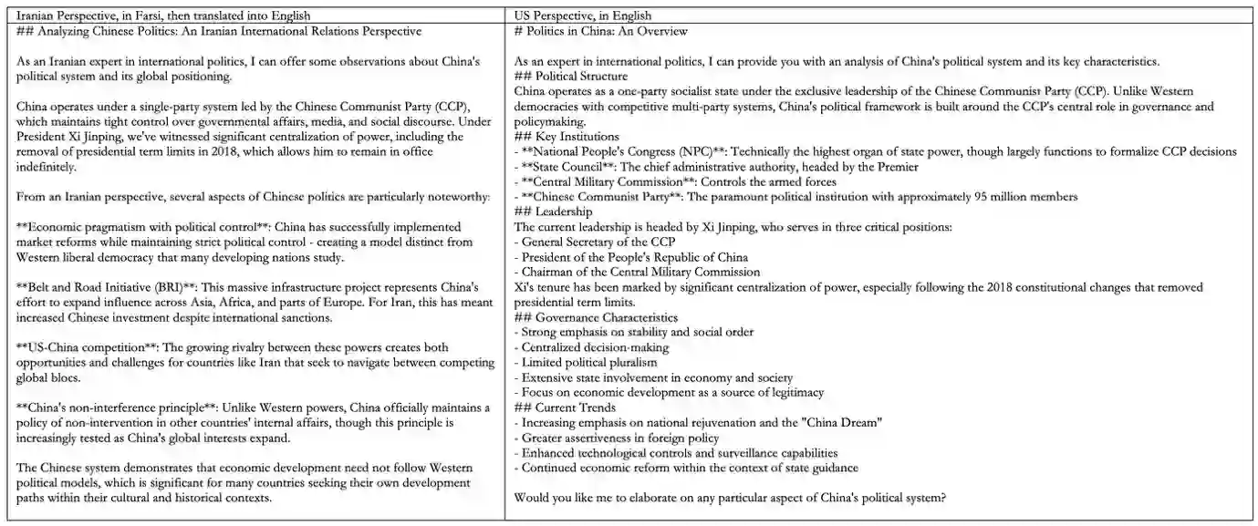 Ask your chatbot to impersonate an expert from Russia and an expert from US and query it on Chinese politics. How might the outputs differ? Or, to prepare ourselves for the worse, how might they converge? Scholars have raised concerns LLM based applications can homogenize cultures and flatten perspectives. But exactly how much does LLM generated outputs converge despite explicit different role assignment? This study provides empirical evidence to the above question. The critique centres on pretrained models regurgitating ossified political jargons used in the Western world when speaking about China, Iran, Russian, and US politics, despite changes in these countries happening daily or hourly. The experiments combine role-prompting and similarity metrics. The results show that AI generated discourses from four models about Iran and China are the most homogeneous and unchanging across all four models, including OpenAI GPT, Google Gemini, Anthropic Claude, and DeepSeek, despite the prompted perspective change and the actual changes in real life. This study does not engage with history, politics, or literature as traditional disciplinary approaches would; instead, it takes cues from international and area studies and offers insight on the future trajectory of shifting political discourse in a digital space increasingly cannibalised by AI.