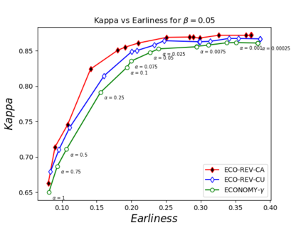 翻译:鉴于时间序列在包括保健、交通和自发性在内的广泛应用中的重要性,提出了许多早期分类方法,以便根据时间序列的早期分类,因为时间序列在包括保健、交通和自发性在内的广泛应用中具有重要性。到目前为止,早期分类问题一直通过考虑只能撤销的决定来解决。本文件提出了一个新问题,即早期和可撤销的时间序列分类,决策者可以根据新的现有测量结果撤销其先前的决定。为了正式确定和解决这一问题,我们提出了新的基于成本的框架,并从中得出两个新的方法。第一种方法没有明确考虑改变决定的成本,而第二种方法则没有考虑。进行了大量实验,以根据一个大的实际数据集基准评价这些方法。取得的经验性结果令人信服地表明:(一) 重新投票决定的能力大大改进了对不可撤销制度的业绩,以及(二) 考虑到改变决定的成本,一般而言,改变决定产生更好的结果。关键词:可撤销的决定、成本估计、在线决定。
