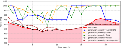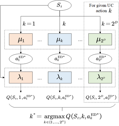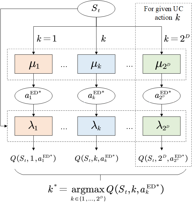 翻译:目前,利用可再生能源的微型电网(MG)的应用正在变得越来越广泛,从而产生了对动态能源管理的强烈需要。在本文件中,深强化学习(DRL)被用于在孤立的MG中学习关于联合能源发送(ED)和单位承诺(UC)决策的最佳政策,目的是在确保供需平衡的前提下降低发电总成本。为了克服由于联合的ED和UC造成的离散、连续的混合行动空间的挑战,我们提出了一种DRL算法,即混合行动定额-正正数 DDPG(HAFH-DDPG),通过将两种经典的DRL算法,即深Q-网络(DQN)和深度的确定性政策梯度(DPG),以有限-正数动态规划框架为基础。此外,提出了柴油发电机(DG)选择战略,以支持简化行动空间,降低这一算法的复杂度。最后,我们提议的算法的有效性通过实际数据实验与若干基线算法的比较得到验证。