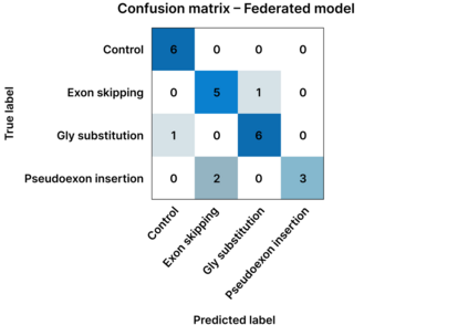 翻译:机器学习(ML)在罕见病(如胶原蛋白VI相关肌营养不良,COL6-RD)诊断中的应用,从根本上受到数据稀缺性和分散性的限制。试图跨越医院、机构或国家扩展样本采集时,常面临因法规差异导致的严重隐私、监管和物流障碍,这些障碍往往难以克服。联邦学习(FL)通过支持在分散数据集上进行协同模型训练,同时保持患者数据本地化和隐私性,提供了一种前景广阔的解决方案。本文报告了一项基于Sherpa.ai FL平台的新型全球FL计划,该计划利用来自患者来源成纤维细胞培养物的胶原蛋白VI免疫荧光显微镜图像,在两个国际组织的分布式数据集上实施FL,用于COL6-RD的诊断。我们的方案构建了一个能够将胶原蛋白VI患者图像分类为与COL6-RD相关的三种主要致病机制组(外显子跳跃、甘氨酸替代和伪外显子插入)的ML模型。这一新方法实现了0.82的F1分数,优于单一机构模型(0.57-0.75)。这些结果表明,与孤立机构模型相比,FL显著提升了诊断效用和泛化能力。除了实现更精确的诊断外,我们预期该方法将支持对意义未明变异的解读,并指导测序策略的优先排序,以识别新的致病变异。
