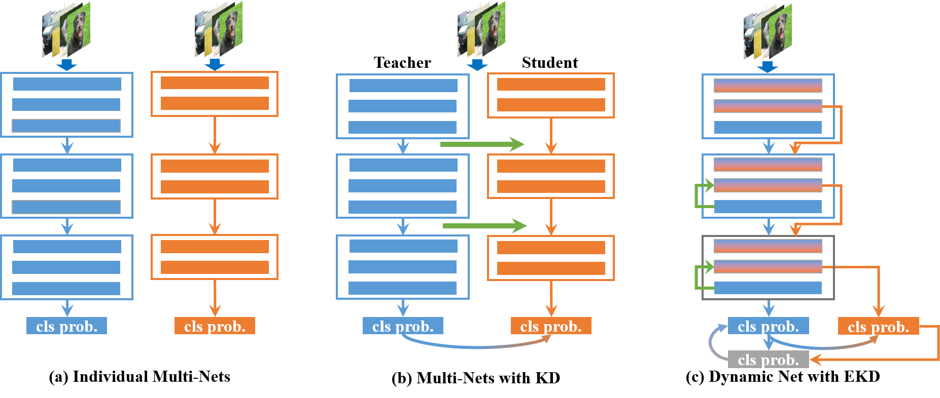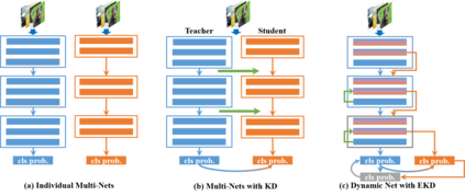 翻译:在实际应用中,不同的计算资源装置需要具有高度准确性的不同深度网络(如ResNet-18/34/50),通常,现有方法要么设计多个网络并对其进行独立培训,要么建立深度/高度动态神经网络,很难证明每个子网的准确性。在本篇文章中,我们建议建立一个优雅的深度水平动态神经网络(DDNN),整合类似结构的不同深度子网。为了改进原始网络的概括化,我们为DDNN设计了嵌入式知识蒸馏(EKD)培训机制,以便从教师(全网)向多个学生(子网)进行知识转让。具体地说,Kullback-Lebel (KL) 差异在于限制全网和子网之间的等级概率一致性,以及在不同深度的同一分辨率的自我蒸馏,目的是推动更丰富的子网络的特征展示。因此,我们可以在不通过内部数据库进行高级精确性能测试的同时,通过内部网络进行多种高性能性能测试,然后通过内部网络进行高级性能测试。