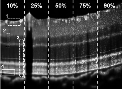 Optical coherence tomography (OCT) suffers from speckle noise, causing the deterioration of image quality, especially in high-resolution modalities like visible light OCT (vis-OCT). The potential of conventional supervised deep learning denoising methods is limited by the difficulty of obtaining clean data. Here, we proposed an innovative self-supervised strategy called Sub2Full (S2F) for OCT despeckling without clean data. This approach works by acquiring two repeated B-scans, splitting the spectrum of the first repeat as a low-resolution input, and utilizing the full spectrum of the second repeat as the high-resolution target. The proposed method was validated on vis-OCT retinal images visualizing sublaminar structures in outer retina and demonstrated superior performance over conventional Noise2Noise and Noise2Void schemes. The code is available at https://github.com/PittOCT/Sub2Full-OCT-Denoising.