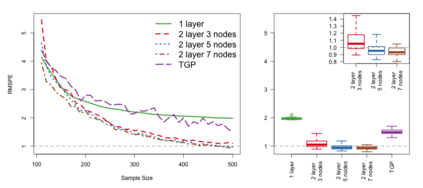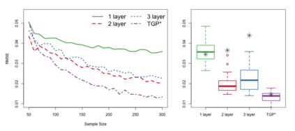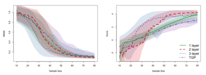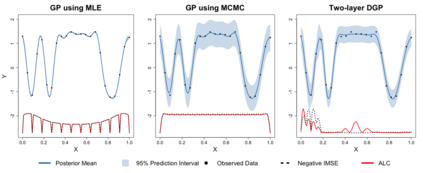 翻译:深高斯进程(DGPs)越来越受欢迎,作为机器学习(ML)中的预测模型,因为它们具有非固定的灵活性和应对培训数据突变的系统变化的能力。在这里,我们探索DGP作为计算机模拟实验的代孕器,这些计算机模拟实验的反应表面具有相似的特性。特别是,我们通过一种新颖的椭圆切切片取样(ESS)巴耶西亚远地点的推断性计划,将DGP自动扭曲输入空间和全部不确定性量化(UQ)传送到积极学习(AL)战略,在输入空间中不统一地分布输入空间 -- -- 一种普通(静止)GP不能做到。按此方式建立设计可以让更小的一组培训,限制对模拟器代码的昂贵评估和降低DGP推断的立方成本。当培训数据大小通过仔细的获取而保持小一些时,加上潜层的偏差布局,这个框架既有效,又可进行计算。我们的方法在模拟数据和两种不同输入维度的实际计算机实验中作了说明。我们提供了一种开源软件。