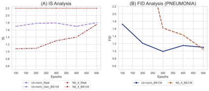 Biomedical image datasets can be imbalanced due to the rarity of targeted diseases. Generative Adversarial Networks play a key role in addressing this imbalance by enabling the generation of synthetic images to augment datasets. It is important to generate synthetic images that incorporate a diverse range of features to accurately represent the distribution of features present in the training imagery. Furthermore, the absence of diverse features in synthetic images can degrade the performance of machine learning classifiers. The mode collapse problem impacts Generative Adversarial Networks' capacity to generate diversified images. Mode collapse comes in two varieties: intra-class and inter-class. In this paper, both varieties of the mode collapse problem are investigated, and their subsequent impact on the diversity of synthetic X-ray images is evaluated. This work contributes an empirical demonstration of the benefits of integrating the adaptive input-image normalization with the Deep Convolutional GAN and Auxiliary Classifier GAN to alleviate the mode collapse problems. Synthetically generated images are utilized for data augmentation and training a Vision Transformer model. The classification performance of the model is evaluated using accuracy, recall, and precision scores. Results demonstrate that the DCGAN and the ACGAN with adaptive input-image normalization outperform the DCGAN and ACGAN with un-normalized X-ray images as evidenced by the superior diversity scores and classification scores.