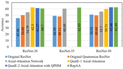 In recent years, hypercomplex-inspired neural networks (HCNNs) have been used to improve deep learning architectures due to their ability to enable channel-based weight sharing, treat colors as a single entity, and improve representational coherence within the layers. The work described herein studies the effect of replacing existing layers in an Axial Attention network with their representationally coherent variants to assess the effect on image classification. We experiment with the stem of the network, the bottleneck layers, and the fully connected backend, by replacing them with representationally coherent variants. These various modifications lead to novel architectures which all yield improved accuracy performance on the ImageNet300k classification dataset. Our baseline networks for comparison were the original real-valued ResNet, the original quaternion-valued ResNet, and the Axial Attention ResNet. Since improvement was observed regardless of which part of the network was modified, there is a promise that this technique may be generally useful in improving classification accuracy for a large class of networks.