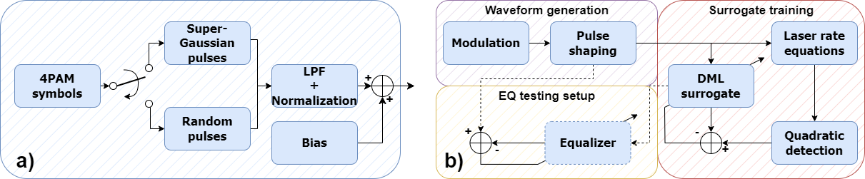 End-to-end learning has become a popular method for joint transmitter and receiver optimization in optical communication systems. Such approach may require a differentiable channel model, thus hindering the optimization of links based on directly modulated lasers (DMLs). This is due to the DML behavior in the large-signal regime, for which no analytical solution is available. In this paper, this problem is addressed by developing and comparing differentiable machine learning-based surrogate models. The models are quantitatively assessed in terms of root mean square error and training/testing time. Once the models are trained, the surrogates are then tested in a numerical equalization setup, resembling a practical end-to-end scenario. Based on the numerical investigation conducted, the convolutional attention transformer is shown to outperform the other models considered.