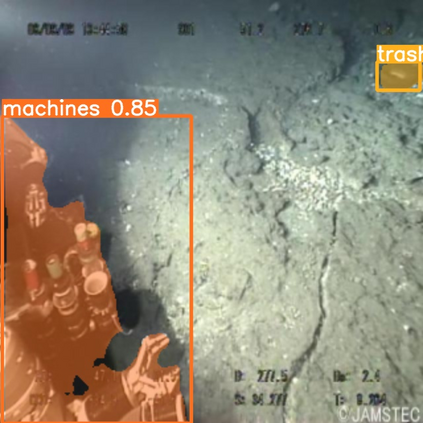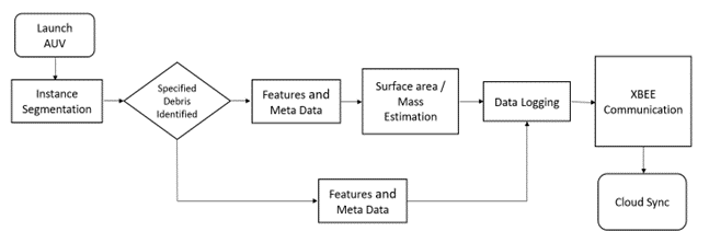 Marine debris poses a significant threat to the survival of marine wildlife, often leading to entanglement and starvation, ultimately resulting in death. Therefore, removing debris from the ocean is crucial to restore the natural balance and allow marine life to thrive. Instance segmentation is an advanced form of object detection that identifies objects and precisely locates and separates them, making it an essential tool for autonomous underwater vehicles (AUVs) to navigate and interact with their underwater environment effectively. AUVs use image segmentation to analyze images captured by their cameras to navigate underwater environments. In this paper, we use instance segmentation to calculate the area of individual objects within an image, we use YOLOV7 in Roboflow to generate a set of bounding boxes for each object in the image with a class label and a confidence score for every detection. A segmentation mask is then created for each object by applying a binary mask to the object's bounding box. The masks are generated by applying a binary threshold to the output of a convolutional neural network trained to segment objects from the background. Finally, refining the segmentation mask for each object is done by applying post-processing techniques such as morphological operations and contour detection, to improve the accuracy and quality of the mask. The process of estimating the area of instance segmentation involves calculating the area of each segmented instance separately and then summing up the areas of all instances to obtain the total area. The calculation is carried out using standard formulas based on the shape of the object, such as rectangles and circles. In cases where the object is complex, the Monte Carlo method is used to estimate the area. This method provides a higher degree of accuracy than traditional methods, especially when using a large number of samples.