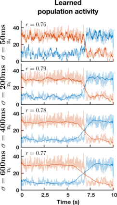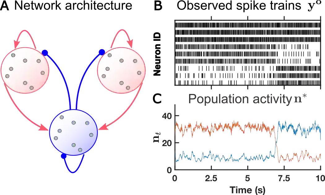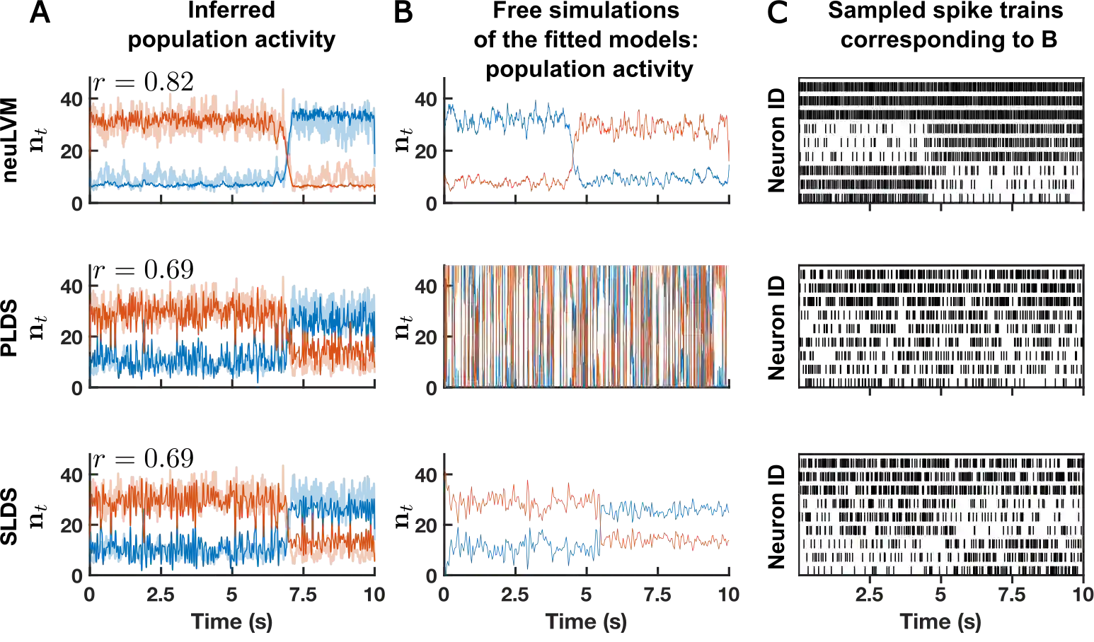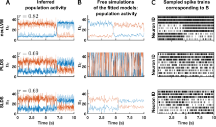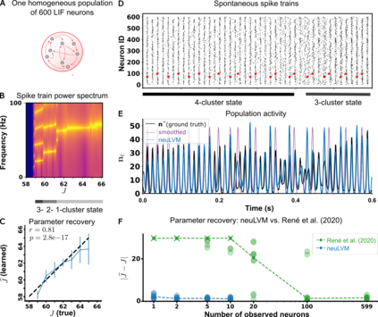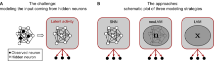 翻译:我们能否使用神经神经网络(SNN)作为多中子录音的基因模型,同时考虑到大多数神经元未被观测到?用大量隐藏的喷雾神经元来模拟未观测到的神经元,导致严重缺乏控制的问题,很难用最大的可能性估计来解决这些问题。在这项工作中,我们使用粗微重力和中位近似值来得出一个自下而上、神经地基潜伏变异模型(NeuLVM),在这个模型中,未观测到的神经元的活动减少到低维中位中位图描述。与以往的潜伏变异模型相比,中位LVM可以明确地绘制成一个经常性的多人口型SNNN,给它提供透明的生物解释。我们在合成加压列列中显示,少数观察到的神经元足以使中位LVM进行高效的模型转换大型SNNNM,这意味着它可以恢复连接参数,推导出单层潜伏人口活动,复制持续的元动态,并在受摄像性模拟时进行一般化。