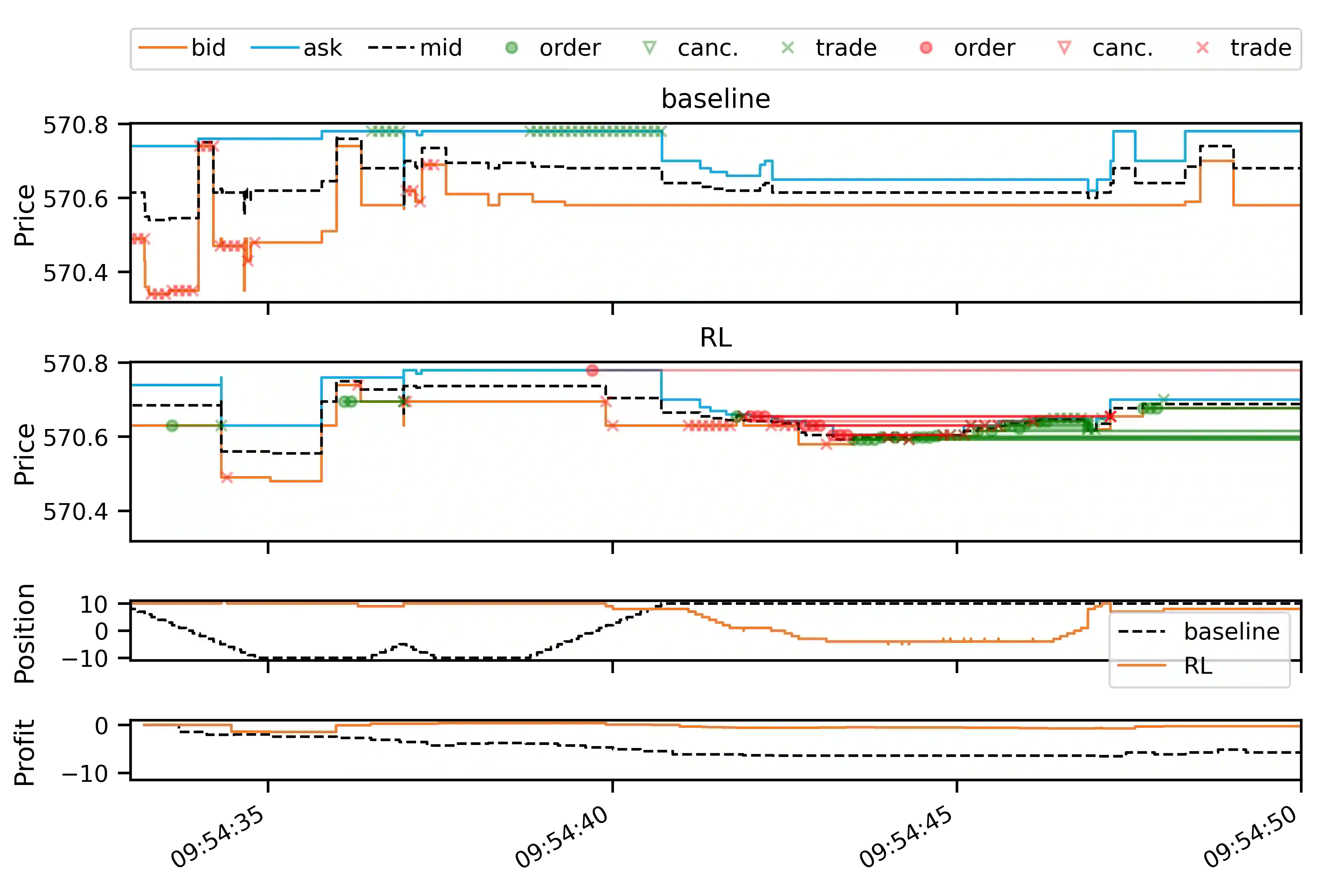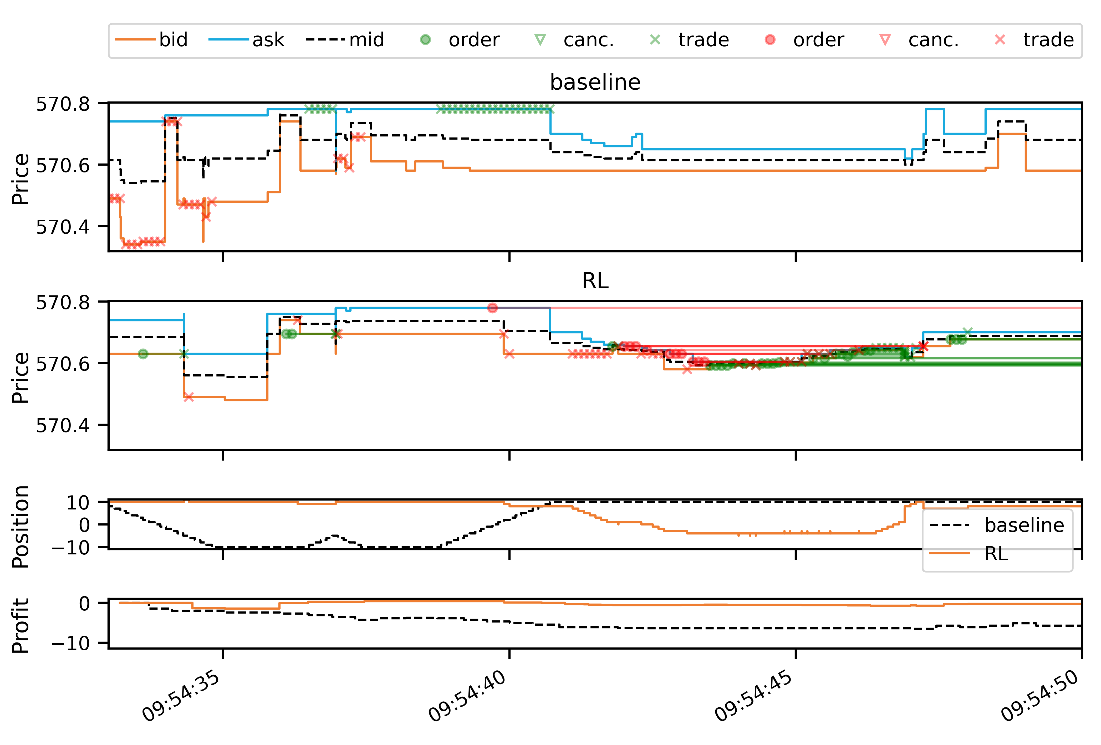 翻译:我们利用深度强化学习(RL)培训代理商,成功将高频交易信号转化为设定个人限制订单的贸易战略。根据ABIDES限制订单书模拟器,我们建设了强化学习OpenAI健身环境,并根据历史订单书信息模拟NASDAQ股票的现实贸易环境。培训一个学会在这种环境中最大限度地实现交易回报的贸易代理商,我们使用APEX(非同步优先经验重现)架构的深杜林双轨学习。该代理商观察了当前限制订单书状态、其近期历史和短期方向预测。为了调查不受具体预测算法影响的适应性贸易RL的绩效,我们研究了我们利用以不同程度的噪音渗透前瞻回报获得的合成阿尔法信号的方法的绩效。我们发现,RL代理商学习了有效的库存管理交易战略,并下令使其超越能够获取同一信号的超常基准交易战略。