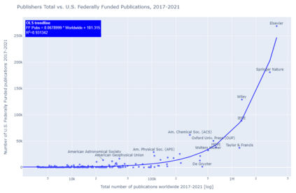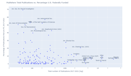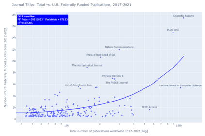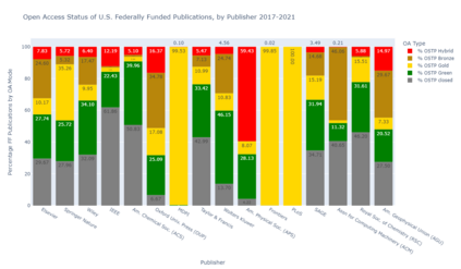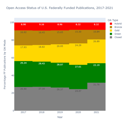 翻译:8月25日,2022年8月25日,白宫科学技术政策办公室发布了一份关于公众获得科学研究机会的备忘录,由Alondra Nelson主任签名,该最新指南取消了美国联邦资助的12个月的封锁期,该期限是2013年《开放政策办公室备忘录》允许的。虽然对这一更新后的联邦指导的反应是全面的,但迄今为止尚未对属于这一新框架范围的出版物进行详细分析。开放政策办公室发布了一份附带报告,同时发布了一份备忘录,但仅提供了每年受影响的总人数的大致估计。因此,本研究报告试图更深入地调查美国联邦资助的研究在2017-2021年五年期间的特点,以更好地了解最新指南的影响。在Times数据库中人工创建的定制过滤器仅用于回复来自美国联邦供资的出版物。结果显示,每年平均发表265,000篇文章,承认美国联邦供资机构,这些研究成果由出版商、期刊标题、机构以及开放访问状态进一步审查。在网上可查到的 http://https/dioblibits。