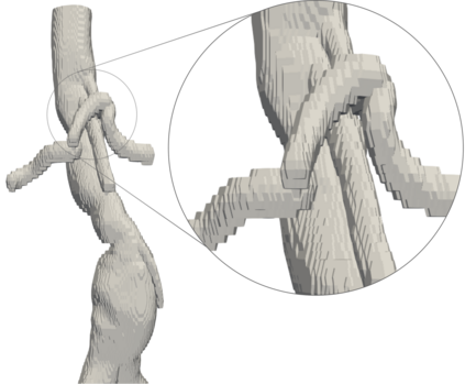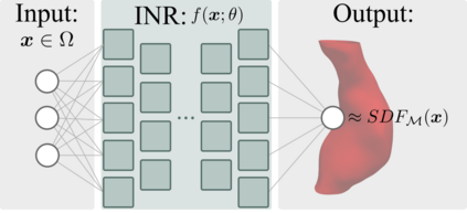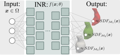 翻译:个人3D血管模型对于心血管疾病患者的诊断、预测和治疗规划是有价值的。传统上,这些模型是用显性表象,如 meshes 和 voxel 面罩,或辐射基函数或原子(肿瘤)形状等隐含表象,来建造的,这些模型是明确的表象。在这里,我们提议用它们签字的距离功能(SDF)的零水平来表示表面,以不同的隐含的心血管表象(INR)来表示。这使我们能够模拟复杂的血管结构,其表象是隐含的、持续的、轻轻轻轻的和易于与深层学习算法结合的。我们在这里用三个实际例子展示了这一方法的潜力。首先,我们从CT图像中获得了准确和水密的表面表面表象,显示它们从表面的200个点开始就具有很强的相容性。第二,我们同时把嵌套的容器壁壁放在一个没有交叉点的单一INR。第三,我们展示了3D 个人动脉模型如何顺利地混入一个水深的表面。我们的结果显示,一个具有互动结构的灵活结构。