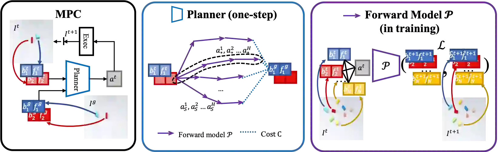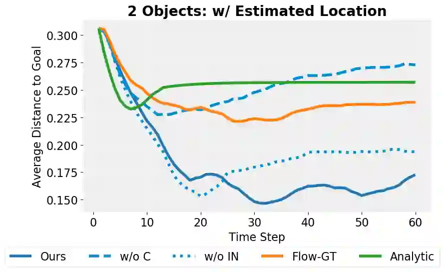 翻译:我们提出了一个方法来学习一个以物体为中心的远方模型,并显示这使我们能够规划实现远方预期目标的行动序列。 我们提议将场景建模成一个物体集,每个物体都有明确的空间位置和隐含的视觉特征,并学习使用随机交互数据模拟行动的效果。 我们的模型可以捕捉机器人-物体和物体-物体相互作用,并导致更具有抽样效率和准确的预测。 我们显示,可以利用这个学习过的模型来搜索导致理想目标配置的行动序列,并且与一个学习的校正模块一起,可以进行稳健的闭路执行。 我们在模拟和真实世界中进行实验,并表明我们的方法在替代的隐含或像素-空间前方模型方面有所改进。 请参见我们的项目网页(https://judyye.github.io/ocmpc/) 以获取结果视频。