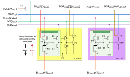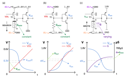 翻译:最近关于联想记忆的突破表明,硅存储器越来越接近人类记忆,尤其是针对能够读写模拟值的记忆电阻器内容寻址存储器(CAM)。然而,时下最先进的记忆电阻器编程算法中的程序验证算法(Program-Verify algorithm)需要经常在验证电导率和编程电阻器之间进行切换,这带来许多缺陷,如高动态功率和长编程时间。在这里,我们提出了一种新颖的基于查找表(LUT-based)的模拟反馈控制记忆电阻器编程电路。采用所提出的算法,记忆电阻器的编程和验证可以在单向顺序过程中完成。除此之外,我们还将单个所提出的编程电路与八个模拟CAM(aCAM)单元集成,以构建一个aCAM阵列。我们提供了在TSMC 28nm工艺上的SPICE仿真。理论分析表明:1. aCAM单元内的记忆电阻器电导可以转换为aCAM搜索操作中的输出边界电压,以及2. aCAM搜索操作中的输出边界电压可以转换为aCAM编程操作中的编程数据线电压。所提出的编程电路的仿真结果证明了理论分析的可行性,从而验证了无需经常在验证电导率和编程电阻器之间切换的记忆电阻器编程的可行性。此外,所提出的aCAM阵列的仿真结果表明,所提出的编程电路可以集成到大型阵列体系结构中。