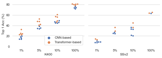翻译:最近,视觉变压器在多个视觉任务中与革命性方法(CNNs)相比被证明具有竞争力。变压器与CNN相比,较不具有限制性的感应偏向感应偏向比CNN具有更大的代表能力。然而,在图像分类设置中,这种灵活性的取舍是在抽样效率方面,变压器需要图像网络规模培训的权衡。这个概念已传到尚未在低标签或半监督的设置中探索变压器进行视频分类的视频。我们的工作经验性地探索了视频分类的低数据制度,并发现,与CNN相比,低标签变压器在低标签视频设置中表现极好。我们专门评估两个对比性视频数据集(Kinetics-400和Something-V2)之间的视频变压器变压器,并进行透彻的分析和对比研究,以利用视频变压器结构的主要特征解释这一观察。我们甚至显示,仅使用标签数据变压器就大大超越了CNN的半监督的复杂方法,从而利用了无标签的大规模数据作为变压器的变压器。我们未来的试验建议。