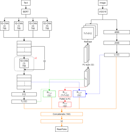 翻译:假新闻探测是提高媒体信息可信度的一项重要任务,因为假新闻每天都在社交媒体上不断传播,这是我们社会非常严重关切的一个问题。假新闻通常是通过操纵图像、文本和视频制造的。在本文中,我们展示了一种新颖的方法,通过使用来自文字和视觉数据的多式功能来检测假新闻。具体地说,我们使用预先培训的BERT模型学习文字功能,并在图像网络数据集上预先培训VGG-19模型来提取图像特征。我们提出了一个比例-点产品关注机制,以捕捉文本特征和视觉特征之间的关系。实验结果显示,我们的方法比公共推特数据集中目前的最新方法要好,精确度为3.1%。