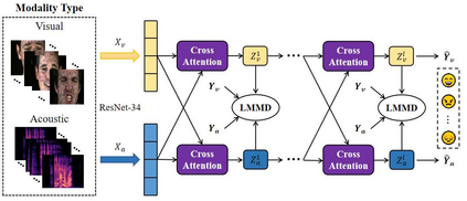 In this paper, we propose a novel deep inductive transfer learning framework, named feature distribution adaptation network, to tackle the challenging multi-modal speech emotion recognition problem. Our method aims to use deep transfer learning strategies to align visual and audio feature distributions to obtain consistent representation of emotion, thereby improving the performance of speech emotion recognition. In our model, the pre-trained ResNet-34 is utilized for feature extraction for facial expression images and acoustic Mel spectrograms, respectively. Then, the cross-attention mechanism is introduced to model the intrinsic similarity relationships of multi-modal features. Finally, the multi-modal feature distribution adaptation is performed efficiently with feed-forward network, which is extended using the local maximum mean discrepancy loss. Experiments are carried out on two benchmark datasets, and the results demonstrate that our model can achieve excellent performance compared with existing ones.