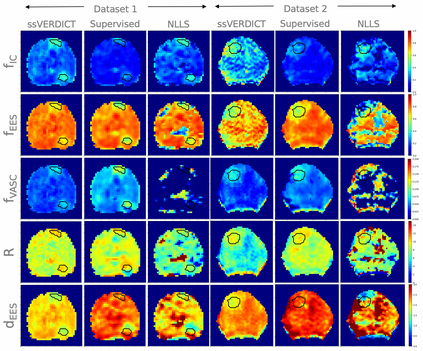 Purpose: Demonstrating and assessing self-supervised machine learning fitting of the VERDICT (Vascular, Extracellular and Restricted DIffusion for Cytometry in Tumours) model for prostate. Methods: We derive a self-supervised neural network for fitting VERDICT (ssVERDICT) that estimates parameter maps without training data. We compare the performance of ssVERDICT to two established baseline methods for fitting diffusion MRI models: conventional nonlinear least squares (NLLS) and supervised deep learning. We do this quantitatively on simulated data, by comparing the Pearson's correlation coefficient, mean-squared error (MSE), bias, and variance with respect to the simulated ground truth. We also calculate in vivo parameter maps on a cohort of 20 prostate cancer patients and compare the methods' performance in discriminating benign from cancerous tissue via Wilcoxon's signed-rank test. Results: In simulations, ssVERDICT outperforms the baseline methods (NLLS and supervised DL) in estimating all the parameters from the VERDICT prostate model in terms of Pearson's correlation coefficient, bias, and MSE. In vivo, ssVERDICT shows stronger lesion conspicuity across all parameter maps, and improves discrimination between benign and cancerous tissue over the baseline methods. Conclusion: ssVERDICT significantly outperforms state-of-the-art methods for VERDICT model fitting, and shows for the first time, fitting of a complex three-compartment biophysical model with machine learning without the requirement of explicit training labels.