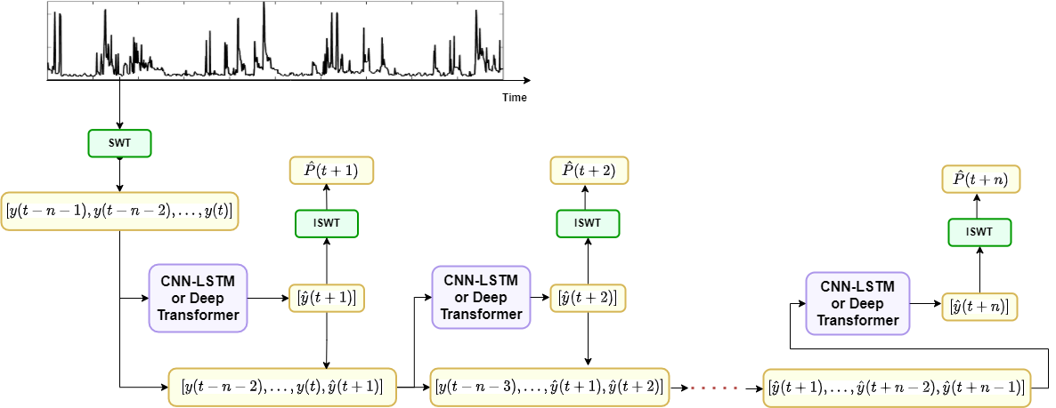 翻译:因此,未来的电力系统应提供高水平的灵活性,以便控制能源消耗。 准确预测能源总和和单个站点水平的未来能源需求/负荷对于能源工业的决策者和专业人员非常重要。 预测能源负荷对能源提供者和消费者更加有利,使他们能制定高效生产战略以满足需求。本研究报告介绍了两种混合级联模式,用于在不同分辨率中预测多步家庭电力消费。第一个模型将固定式波列变(SWT)作为高效的信号预处理技术,与 Convolual Neal网络和长期短期内存(LSTM)相结合。第二个混合模型将SWT与一个以自我注意为基础的神经网络结构(称为变压器)结合起来。在多步能源预测问题中使用SWT等时间频率分析方法的主要制约因素是,它们需要顺序信号,使多步预测应用中的信号重建有问题。 级联式模型可以通过累进产出有效地解决这一问题。实验结果显示,拟议的混合模型比现有的多步消费预测方法更精确。