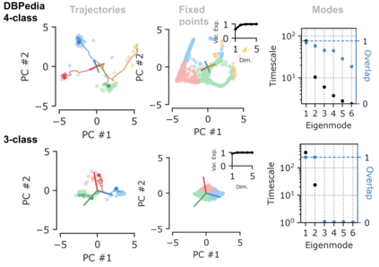 翻译:尽管在各种任务中广泛应用了经常性神经网络(RNN),但对于RNN如何解决这些任务的统一理解仍然难以实现。特别是,不清楚在经过培训的RNN中会产生哪些动态模式,以及这些模式如何取决于培训数据集或任务。这项工作在特定自然语言处理任务的背景下解决了这些问题:文本分类。我们利用动态系统分析工具,研究在自然和合成文本分类任务电池方面受过训练的经常性网络。我们发现这些经过培训的RNN的动态既可解释,又低度。我们发现这些经过培训的RNN的动态是可解释的。具体地说,在建筑和数据集之间,RNNN在处理文本时为每个类别积累证据,使用低维的吸引器作为基本机制。此外,吸引器的维度和几何度是由培训数据集的结构决定的;特别是,我们用动态系统计算的简单字数统计数据来预测这些属性。我们的观测涉及多个结构和数据集,反映了用于进行文本分类的通用机制。具体地说,RNNNN采用低维吸引器的多种机制进行文本分类。此外,将模型用于进行基础的模型的计算。