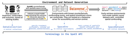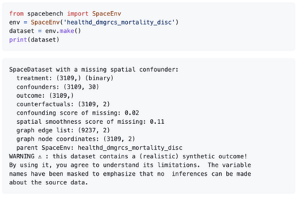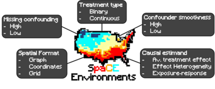 Spatial confounding poses a significant challenge in scientific studies involving spatial data, where unobserved spatial variables can influence both treatment and outcome, possibly leading to spurious associations. To address this problem, we introduce SpaCE: The Spatial Confounding Environment, the first toolkit to provide realistic benchmark datasets and tools for systematically evaluating causal inference methods designed to alleviate spatial confounding. Each dataset includes training data, true counterfactuals, a spatial graph with coordinates, and smoothness and confounding scores characterizing the effect of a missing spatial confounder. It also includes realistic semi-synthetic outcomes and counterfactuals, generated using state-of-the-art machine learning ensembles, following best practices for causal inference benchmarks. The datasets cover real treatment and covariates from diverse domains, including climate, health and social sciences. SpaCE facilitates an automated end-to-end pipeline, simplifying data loading, experimental setup, and evaluating machine learning and causal inference models. The SpaCE project provides several dozens of datasets of diverse sizes and spatial complexity. It is publicly available as a Python package, encouraging community feedback and contributions.