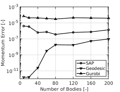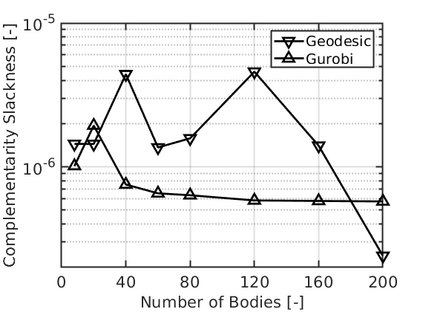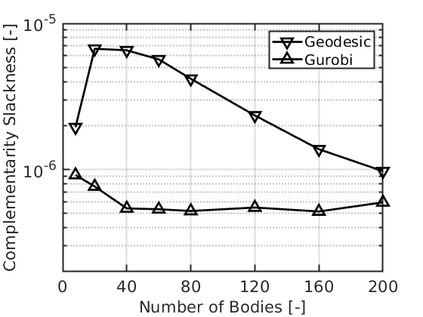 翻译:我们提出了一个符合要求的摩擦接触的精密配方,并提出了一种强大的、有性能的方法来在实践中解决这一问题。通过分析消除接触限制,我们获得了一个不受限制的锥体问题。我们的解答器已证明了全球趋同和热启动是有效的,能够以互动速率进行模拟。我们开发了接触器的精密分析表达方式,使我们能够以清晰的物理术语描述我们的模型,并严格地描述我们的近似特征。此外,这也使我们不仅能够模拟点接触,而且能够纳入符合要求的接触补丁的精密模型。我们的时间跳板计划包括中点规则,我们通过摩擦接触也能够达到第二顺序的精确度。我们引入了一些精确度指标,并展示了我们的方法优于现有的商业和开放源替代物,而没有牺牲准确性。最后,我们展示了以互动速率对机器人操纵任务进行强力模拟,并准确解决了震动和接触过渡,这是有意义的模拟到真实传输所需要的。我们的方法在开放源机器人工具包Drake中实施。