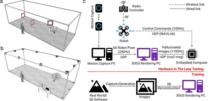Autonomous aerial robots are becoming commonplace in our lives. Hands-on aerial robotics courses are pivotal in training the next-generation workforce to meet the growing market demands. Such an efficient and compelling course depends on a reliable testbed. In this paper, we present VizFlyt, an open-source perception-centric Hardware-In-The-Loop (HITL) photorealistic testing framework for aerial robotics courses. We utilize pose from an external localization system to hallucinate real-time and photorealistic visual sensors using 3D Gaussian Splatting. This enables stress-free testing of autonomy algorithms on aerial robots without the risk of crashing into obstacles. We achieve over 100Hz of system update rate. Lastly, we build upon our past experiences of offering hands-on aerial robotics courses and propose a new open-source and open-hardware curriculum based on VizFlyt for the future. We test our framework on various course projects in real-world HITL experiments and present the results showing the efficacy of such a system and its large potential use cases. Code, datasets, hardware guides and demo videos are available at https://pear.wpi.edu/research/vizflyt.html