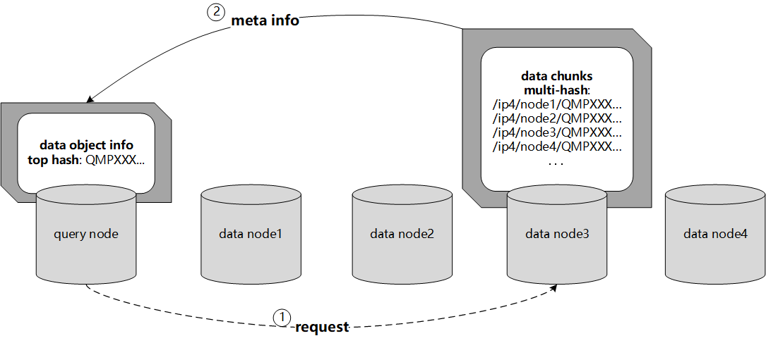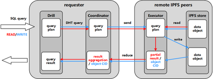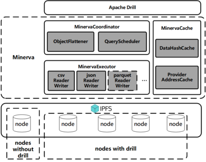 Data silos create barriers in accessing and utilizing data dispersed over networks. Directly sharing data easily suffers from the long downloading time, the single point failure and the untraceable data usage. In this paper, we present Minerva, a peer-to-peer cross-cluster data query system based on InterPlanetary File System (IPFS). Minerva makes use of the distributed Hash table (DHT) lookup to pinpoint the locations that store content chunks. We theoretically model the DHT query delay and introduce the fat Merkle tree structure as well as the DHT caching to reduce it. We design the query plan for read and write operations on top of Apache Drill that enables the collaborative query with decentralized workers. We conduct comprehensive experiments on Minerva, and the results show that Minerva achieves up to $2.08 \times$ query performance acceleration compared to the original IPFS data query, and could complete data analysis queries on the Internet-like environments within an average latency of $0.615$ second. With collaborative query, Minerva could perform up to $1.39 \times$ performance acceleration than centralized query with raw data shipment.