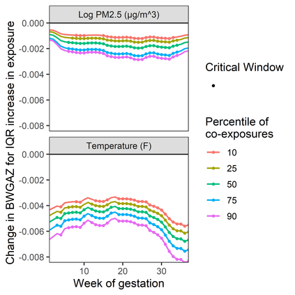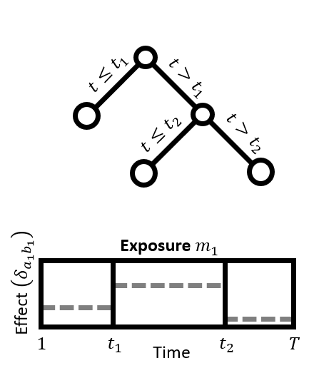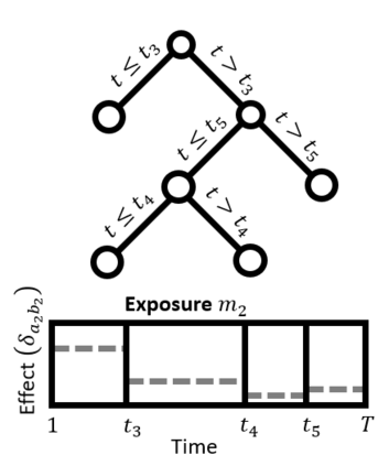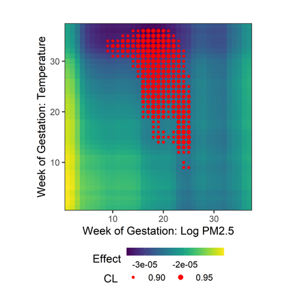 翻译:研究旨在确定关键窗口、接触能够改变未来健康结果的时间期限,并估计接触-反应关系; 现有的统计方法侧重于估计产妇接触高时分分辨率观察到的单一环境化学品(如整个怀孕期间每周)与儿童健康结果之间的关联; 将高时分分辨率观测到的多种化学品扩大到多种化学品会产生一个维度问题,而且缺乏统计方法; 我们提议了一个以树为基础的接触混合物模型,在高时分分辨率下观测到。 提议的方法使用结构化树脂添加剂,确定时间溶解预测器和变量选择之间的结构化主要效应和相互作用,从模型预测器中选择与结果无关的模型预测器。 我们采用我们的方法模拟和分析怀孕期间每周测量的五种化学品之间的关系,并在一个康乐罗拉克出生组中测出出生体重。 我们确定了关键窗口,在此期间,微粒物质、二氧化硫化合物和温度与出生体重和微粒质颗粒物质与温度之间的相互作用有负联系。