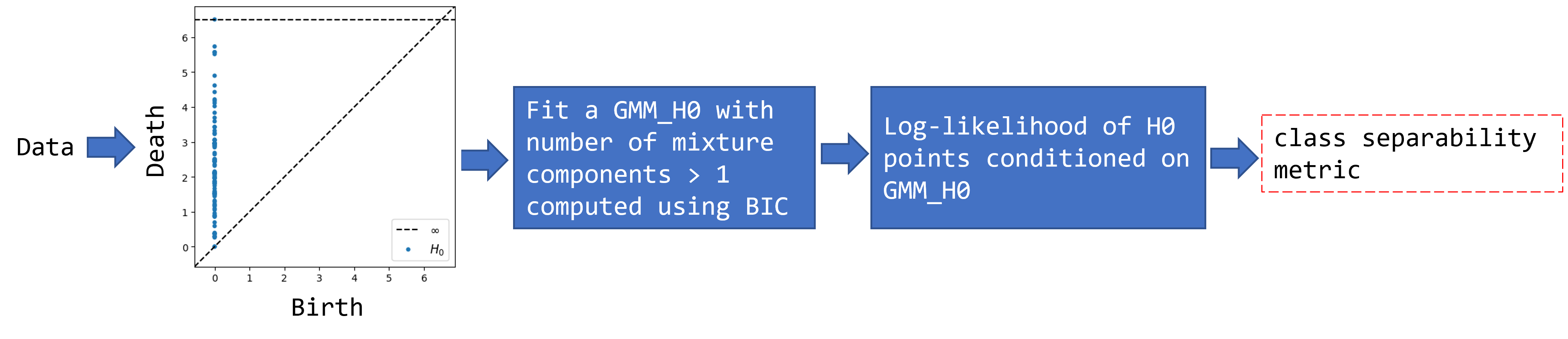 This paper proposes an unsupervised method that leverages topological characteristics of data manifolds to estimate class separability of the data without requiring labels. Experiments conducted in this paper on several datasets demonstrate a clear correlation and consistency between the class separability estimated by the proposed method with supervised metrics like Fisher Discriminant Ratio~(FDR) and cross-validation of a classifier, which both require labels. This can enable implementing learning paradigms aimed at learning from both labeled and unlabeled data, like semi-supervised and transductive learning. This would be particularly useful when we have limited labeled data and a relatively large unlabeled dataset that can be used to enhance the learning process. The proposed method is implemented for language model fine-tuning with automated stopping criterion by monitoring class separability of the embedding-space manifold in an unsupervised setting. The proposed methodology has been first validated on synthetic data, where the results show a clear consistency between class separability estimated by the proposed method and class separability computed by FDR. The method has been also implemented on both public and internal data. The results show that the proposed method can effectively aid -- without the need for labels -- a decision on when to stop or continue the fine-tuning of a language model and which fine-tuning iteration is expected to achieve a maximum classification performance through quantification of the class separability of the embedding manifold.