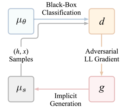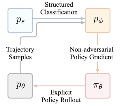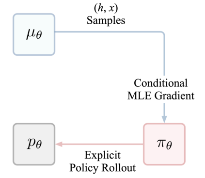 Consider learning a generative model for time-series data. The sequential setting poses a unique challenge: Not only should the generator capture the conditional dynamics of (stepwise) transitions, but its open-loop rollouts should also preserve the joint distribution of (multi-step) trajectories. On one hand, autoregressive models trained by MLE allow learning and computing explicit transition distributions, but suffer from compounding error during rollouts. On the other hand, adversarial models based on GAN training alleviate such exposure bias, but transitions are implicit and hard to assess. In this work, we study a generative framework that seeks to combine the strengths of both: Motivated by a moment-matching objective to mitigate compounding error, we optimize a local (but forward-looking) transition policy, where the reinforcement signal is provided by a global (but stepwise-decomposable) energy model trained by contrastive estimation. At training, the two components are learned cooperatively, avoiding the instabilities typical of adversarial objectives. At inference, the learned policy serves as the generator for iterative sampling, and the learned energy serves as a trajectory-level measure for evaluating sample quality. By expressly training a policy to imitate sequential behavior of time-series features in a dataset, this approach embodies "generation by imitation". Theoretically, we illustrate the correctness of this formulation and the consistency of the algorithm. Empirically, we evaluate its ability to generate predictively useful samples from real-world datasets, verifying that it performs at the standard of existing benchmarks.
