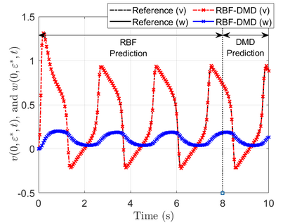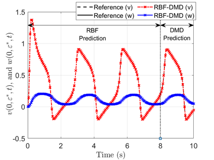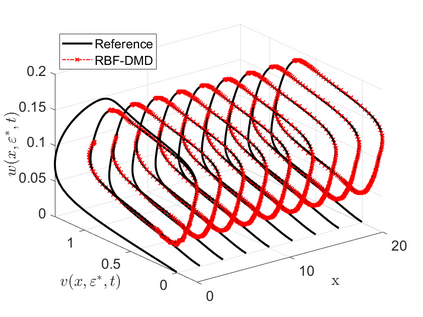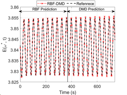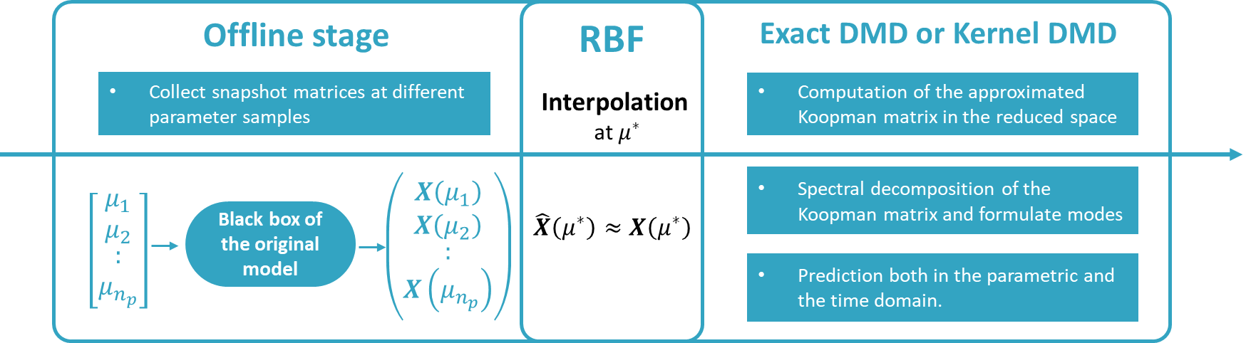 A non-intrusive model order reduction (MOR) method that combines features of the dynamic mode decomposition (DMD) and the radial basis function (RBF) network is proposed to predict the dynamics of parametric nonlinear systems. In many applications, we have limited access to the information of the whole system, which motivates non-intrusive model reduction. One bottleneck is capturing the dynamics of the solution without knowing the physics inside the "black-box" system. DMD is a powerful tool to mimic the dynamics of the system and give a reliable approximation of the solution in the time domain using only the dominant DMD modes. However, DMD cannot reproduce the parametric behavior of the dynamics. Our contribution focuses on extending DMD to parametric DMD by RBF interpolation. Specifically, a RBF network is first trained using snapshot matrices at limited parameter samples. The snapshot matrix at any new parameter sample can be quickly learned from the RBF network. DMD will use the newly generated snapshot matrix at the online stage to predict the time patterns of the dynamics corresponding to the new parameter sample. The proposed framework and algorithm are tested and validated by numerical examples including models with parametrized and time-varying inputs.