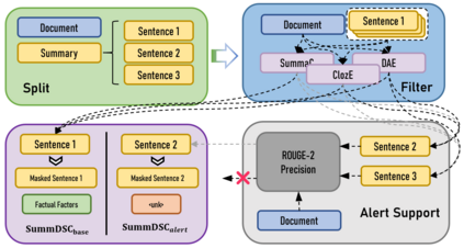 Improving factual consistency in abstractive summarization has been a focus of current research. One promising approach is the post-editing method. However, previous works have yet to make sufficient use of factual factors in summaries and suffers from the negative effect of the training datasets. In this paper, we first propose a novel factual error correction model FactCloze based on a conditional-generation cloze task. FactCloze can construct the causality among factual factors while being able to determine whether the blank can be answered or not. Then, we propose a data distillation method to generate a more faithful summarization dataset SummDSC via multiple-dimensional evaluation. We experimentally validate the effectiveness of our approach, which leads to an improvement in multiple factual consistency metrics compared to baselines.