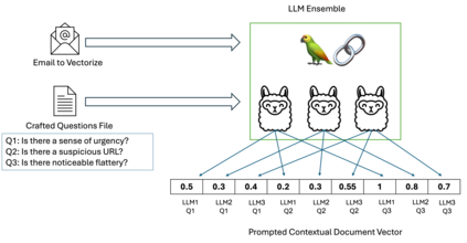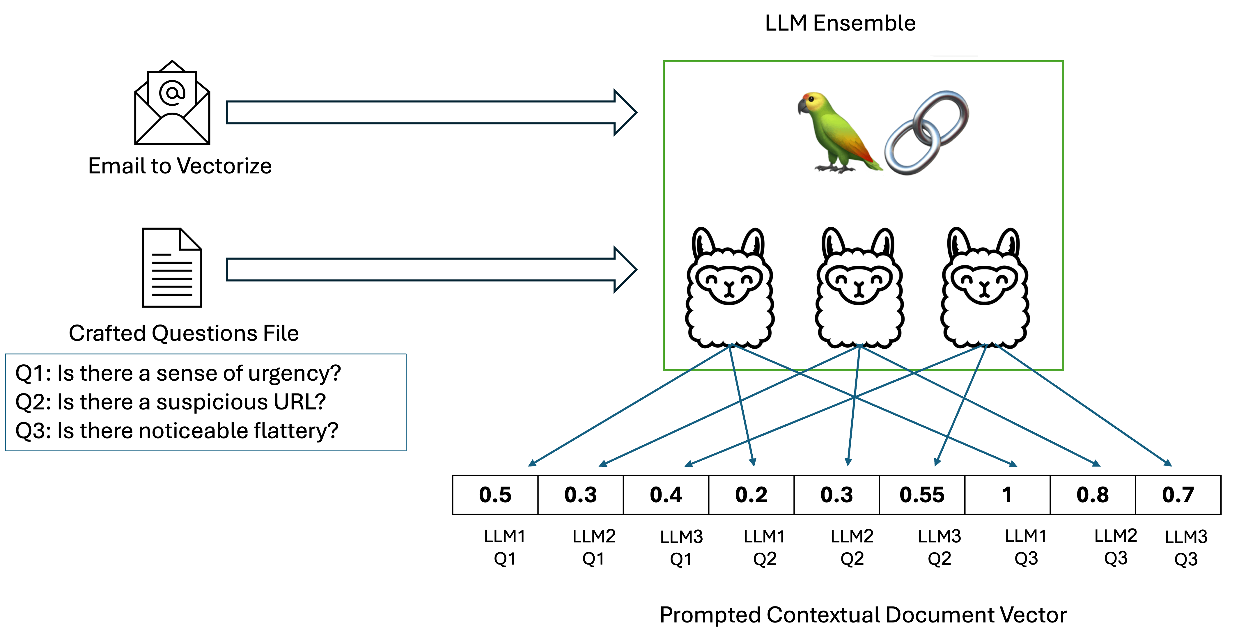 Spear-phishing attacks present a significant security challenge, with large language models (LLMs) escalating the threat by generating convincing emails and facilitating target reconnaissance. To address this, we propose a detection approach based on a novel document vectorization method that utilizes an ensemble of LLMs to create representation vectors. By prompting LLMs to reason and respond to human-crafted questions, we quantify the presence of common persuasion principles in the email's content, producing prompted contextual document vectors for a downstream supervised machine learning model. We evaluate our method using a unique dataset generated by a proprietary system that automates target reconnaissance and spear-phishing email creation. Our method achieves a 91% F1 score in identifying LLM-generated spear-phishing emails, with the training set comprising only traditional phishing and benign emails. Key contributions include an innovative document vectorization method utilizing LLM reasoning, a publicly available dataset of high-quality spear-phishing emails, and the demonstrated effectiveness of our method in detecting such emails. This methodology can be utilized for various document classification tasks, particularly in adversarial problem domains.