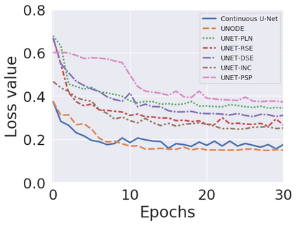 翻译:图像分割是图像分析和临床实践的一项基本任务。 目前的最先进的技术基于U- shape 类型编码器- 编码器网络,称为U- Net。 尽管现有的 U-Net 类型网络报告了强大的性能,但它们受到若干重大限制。 问题包括: 接收字段大小的硬编码, 影响性能和计算成本, 以及它们没有考虑到数据中固有的噪音。 它们与离散层有问题, 没有提供任何理论依据。 在这项工作中, 我们引入了连续的 U- Net, 一个图像分割网络的新组合。 首先, 持续的 U- Net是一个连续的深神经网络, 以第二顺序普通差异方程式为模型, 引入新的动态区块。 第二, 我们为我们的网络提供理论保证, 显示更快的趋同性、 更高强度和较少对噪音的敏感度。 第三, 我们通过广泛的数字和视觉结果, 我们通过模型超越了现有的一些医学图像分割基准数据集的 U-Net 。