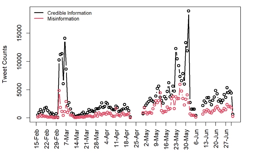 翻译:在COVID-19期间,社交媒体的错误信息影响采取适当的预防行为,迫切需要制止错误信息,以防止负面的公共健康后果。尽管一系列研究提出了错误信息抑制战略,但很少有人调查危机期间主要可信信息的作用。没有人利用纵向社交媒体数据从数量上审视其影响。因此,这项研究调查了可信信息和错误信息之间的时间相关性,以及主要可信的信息能否为两种预防措施(即专题),即利用从2020年2月15日至6月30日收集的推特,即戴面具和社交迷惑,抑制错误信息。我们培训了支持病媒机器分类员检索相关的推文,并对包含每个专题可信信息和错误信息的推文进行分类。根据对两个专题的可信和错误信息时间序列的交叉关系分析,我们发现以前占主导地位的可信信息可能会导致错误信息减少(即压制)的时间滞后。研究结果为在复杂的在线环境中用可靠信息抑制错误信息提供了实证证据,并为危机和紧急情况下的未来信息管理提出了实际战略。