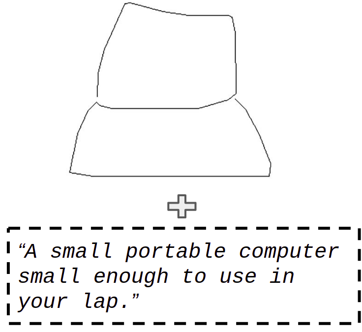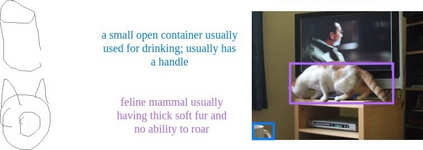 翻译:将一个图片或对象类别名称的图像都无法在您腿上使用的小便携计算机 和素描查询一样, 手画对象的草图可能是查询的选择。 但是, 单手画的粗略草图, 用作查询时, 可能对于对象的本地化模糊不清, 例如, 膝上型笔记本的草图可能会被沙发混淆。 另一方面, 该类别的语言定义, 例如, 一个小到足以在您腿上使用的小型便携式计算机, 与素描查询一起, 为对象本地化提供更好的视觉和语义提示提示。 在这种假设中, 我们用一个多式的自手画式目标定位图, 在具有挑战性的开放设置设置设置下, 单手画的粗粗粗粗粗的本地化方法。 手画的素描图和描述中, 以最小的本地化方法标定, 以我们给出的域标本为主页码的本地化方法, 并且以粗略的路径图解, 将当前精细的路径转换为图表 。