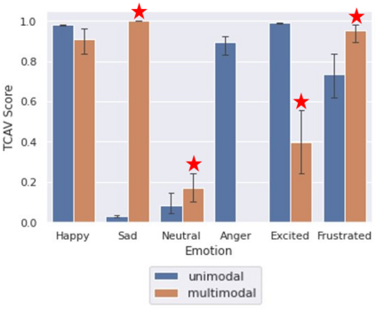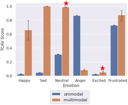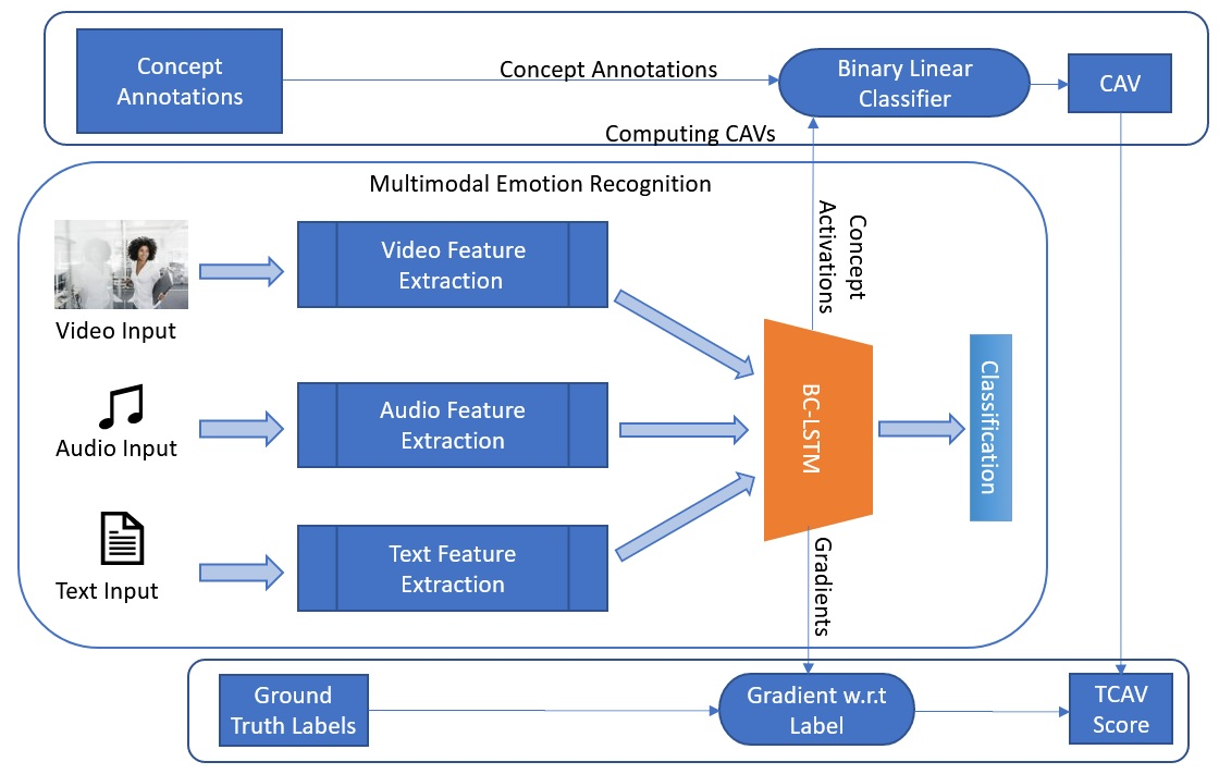 翻译:多式情感认知是指将输入视频序列分类为基于多种输入模式(通常是视频、音频和文字)的情感标签。近年来,深神经网络在识别人类情感方面表现出了显著的成绩,并且与人类在这项任务方面的表现相当。尽管最近在这一领域取得了进步,但由于其推理和决策过程的模糊性质,情感识别系统尚未被现实世界设置所接受。这个领域的研究大多涉及改进这项任务绩效的新结构,很少尝试为这些模型的决定提供解释。在本文件中,我们讨论了在使用概念动因矢量(CAVs)来识别情感背景下神经网络的可解释性问题。为了分析模型的潜在空间,我们定义了情感AI所特有的人类可理解概念,并将这些概念映射到广泛使用的 IEMOCAP 多式联运数据库中。然后,我们评估了我们提出的概念在双向背景LSTM(BC-LSTM)网络多个层次上的影响,以显示这些模型的逻辑网络在通过概念识别情感认同的神经网络的推理过程中,我们最后可以代表着这种可理解性概念。