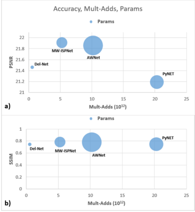 翻译:智能手机摄取图像的质量是一项重要规格,因为智能手机作为主要捕捉装置正在变得无处不在,因此智能手机拍摄的图像信号处理(ISP)传统管道在智能手机摄像机中的传统图像处理(ISP)管道质量有限,包括从原始传感器数据中按顺序进行的若干图像处理步骤,以重建高质量的SRGB图像。这些步骤包括演示、脱色、白平衡、伽马校正、彩色增强等。由于每个步骤都是按顺序使用手动算法进行的,每个处理模块的剩余误差在最后重建的信号中积累。因此,传统的ISP管道在各种照明条件和相关噪音水平的通用性方面,重建质量有限。使用革命性神经网络(CNN)的深层学习方法,在解决许多与图像有关的任务时变得很受欢迎,例如图像解析、对比增强、超分辨率解析、分解等。 此外,最近使用深层学习方法对SRGBB转换的系统转换方法,也在最后重建信号中积累了它们的记忆要求和Mult-Add路段数量方面都限制了重建质量质量,同时捕捉取图像。