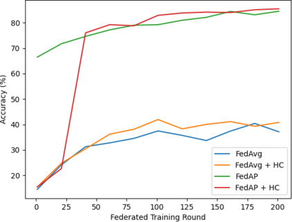 翻译:联邦学习(FL)是一种分布式学习方法,它为医疗机构提供了在全球模式中合作的前景,同时保护其病人的隐私。虽然大多数医疗中心都执行类似的医疗成像任务,但其不同之处,如专业、病人人数和装置等,导致了独特的数据分布。数据差异性对FL和地方模型的个性化构成了挑战。在这项工作中,我们调查了FL的适应性等级分组方法,以产生中间半全球模型,因此,拥有类似数据的客户有机会形成一个更加专业化的模式。我们的方法组成了若干组群,由数据分布最相似的客户组成;然后,每个组群继续单独培训。在组内,我们利用元学习来改进参与者模型的个人化。我们通过评估我们提议的皮肤病分类HAM10k数据集的方法和极端多元性数据分布,将集群方法与传统的FedAvg和集中化培训进行比较。我们的实验表明,与分类精度方面标准的FL方法相比,异性分布获得显著的绩效。此外,我们显示,如果这些模型在组群集和超越集中化培训中应用,我们只使用一个小组数据,那么这些模型就会更快地结合。