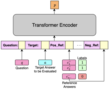 Evaluation of QA systems is very challenging and expensive, with the most reliable approach being human annotations of correctness of answers for questions. Recent works (AVA, BEM) have shown that transformer LM encoder based similarity metrics transfer well for QA evaluation, but they are limited by the usage of a single correct reference answer. We propose a new evaluation metric: SQuArE (Sentence-level QUestion AnsweRing Evaluation), using multiple reference answers (combining multiple correct and incorrect references) for sentence-form QA. We evaluate SQuArE on both sentence-level extractive (Answer Selection) and generative (GenQA) QA systems, across multiple academic and industrial datasets, and show that it outperforms previous baselines and obtains the highest correlation with human annotations.